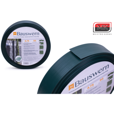 Tvoros juosta BAUSWERN PREMIUM, 50 x 0,0475 m (700 g/m²) segmentinei tvorai – puikus sprendimas norintiems privatumo. PP juostos tvorai apsaugo pramoninius bei privačius objektus nuo nepalankių oro sąlygų: stipraus vėjo ar sniego pūgos. Suteikia saugaus komforto jausmą bei apsaugo nuo pašalinių akių. Tvoros juostos yra gaminamos iš ilgaamžio ir UV poveikiui atsparaus PP, storis 700 g/m².