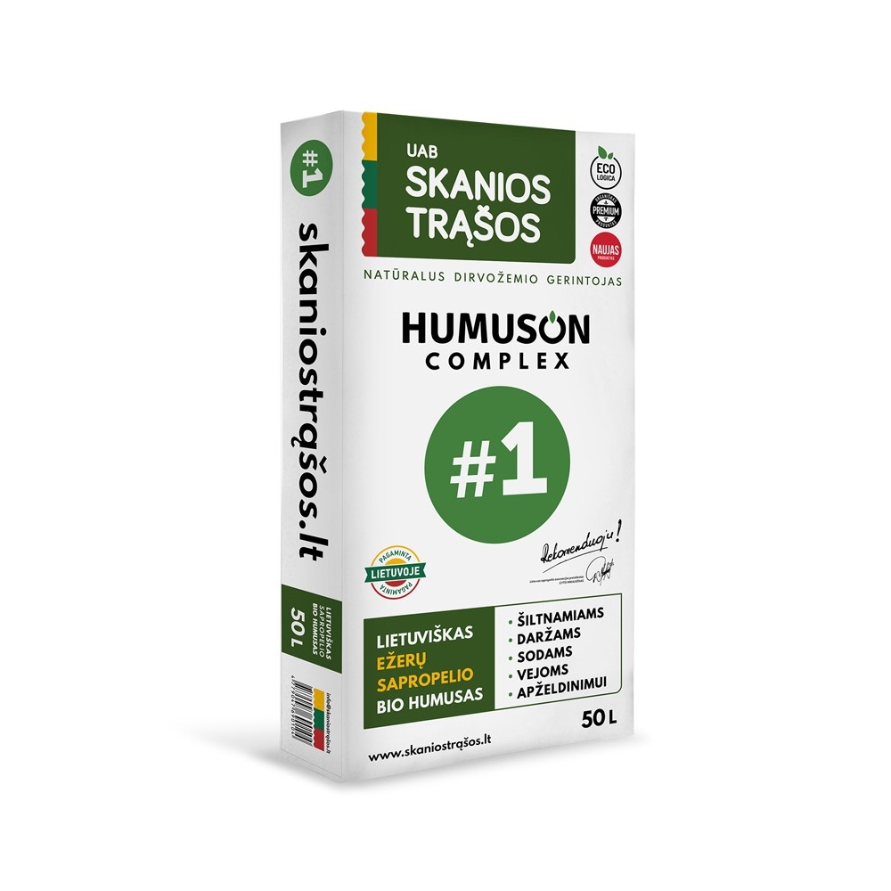 HUMUSON COMPLEX – naujos kartos ekologiškos trąšos. Pagrindinė produkto žaliava – sapropelis – medžiaga, susiformavusi gėlo vandens ežeruose per 10 000 metų. Tai unikali organinė higieniška žaliava. Gamybos procesų metu nenaudojamas termo apdirbimas, todėl išsaugoma ypač didelė dalis organinių mitybinių elementų ir pozityviųjų mikroorganizmų.