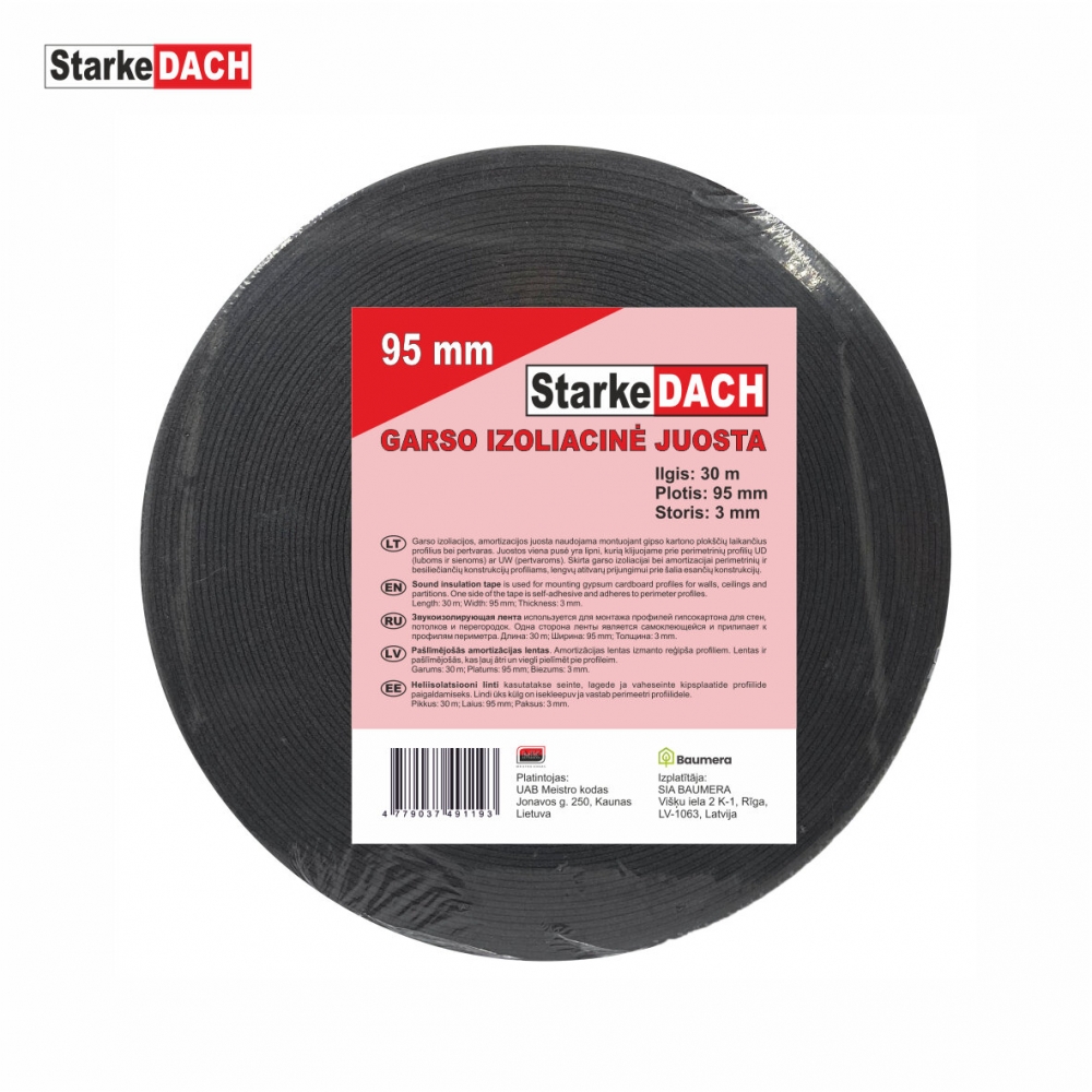 Garso izoliacijos, amortizacijos juosta naudojama montuojant gipso kartono plokščių laikančius profilius bei pertvaras.