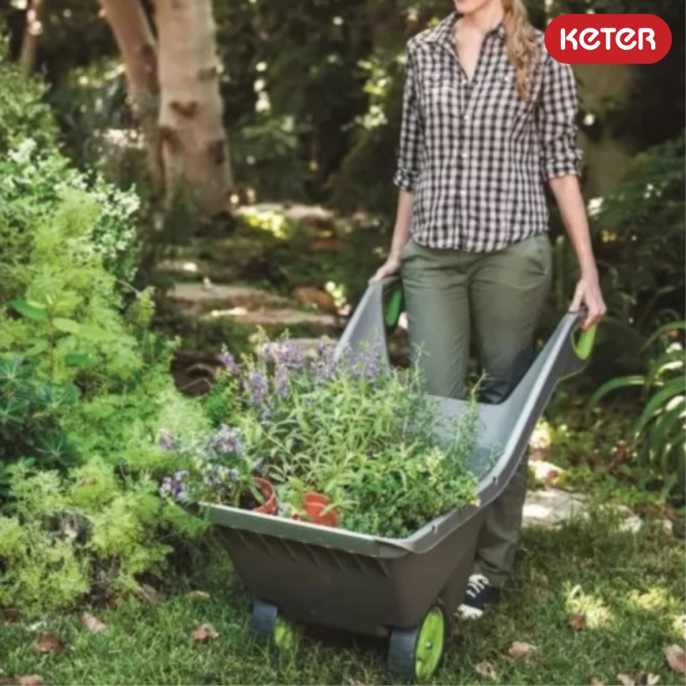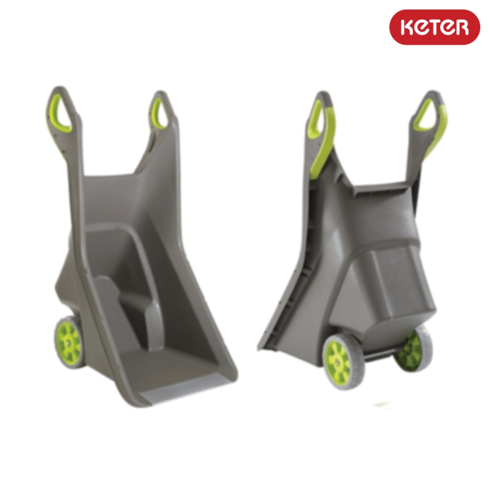 Moderni konstrukcija su sustiprintais kraštais leidžia karutį pakrauti iš dviejų pozicijų: viršaus ir horizontaliai. Plastikas, iš kurio pagamintas karutis, yra atsparus nepalankioms oro sąlygoms, o sustiprinti guminiai ratai palengvina karučio transportavimą.