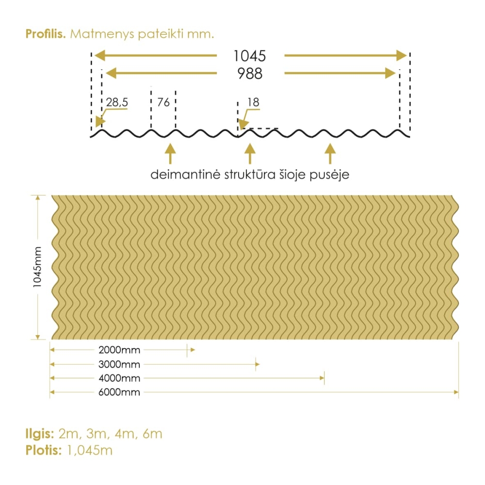 Galimas lakšto ilgis: 2 m, 3 m, 4 m, 6 m.