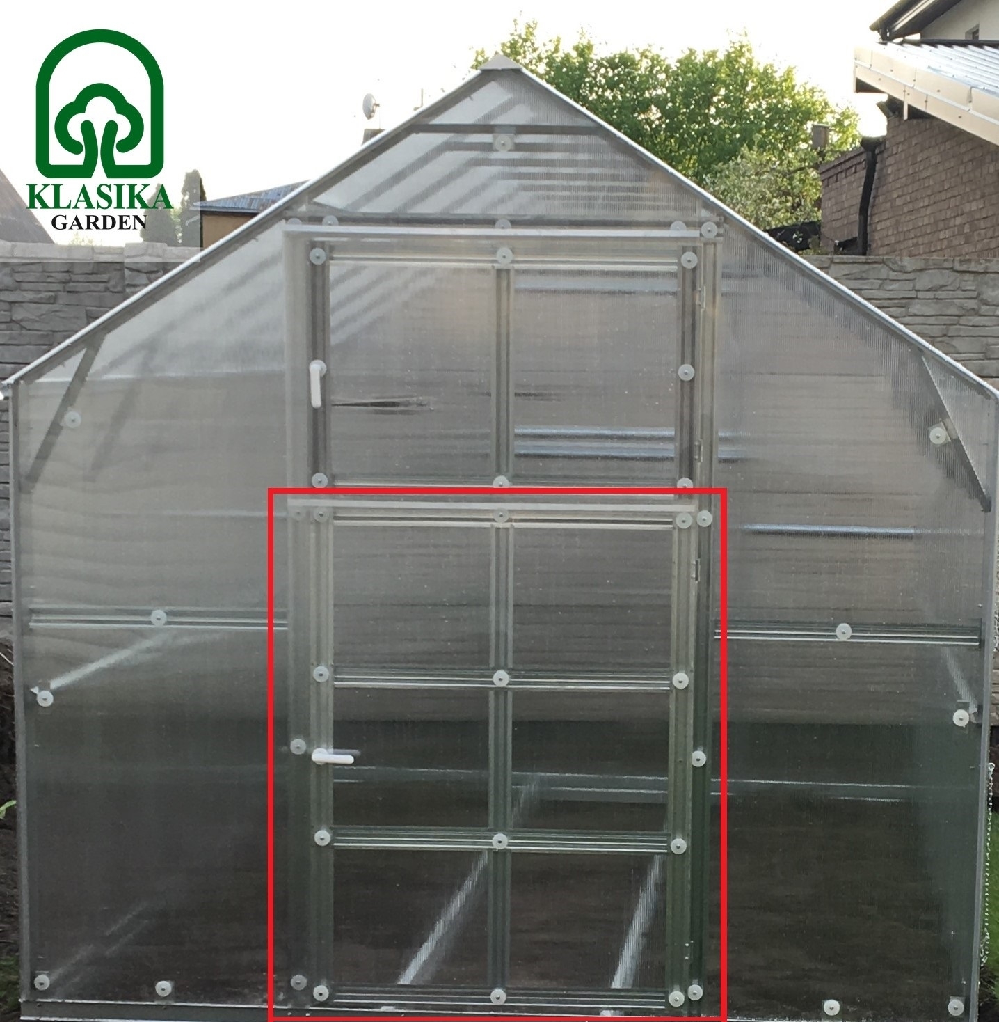 Pritaikyta papildomam Klasika Bernard šiltnamio vėdinimui iš galinės šiltnamio dalies.-Pagaminta iš cinkuoto metalo,-Komplektuojama su 6 mm storio polikarbonatine danga arba be dangos*.Pateikiama išsami montavimo instrukcija.*Komplektuojant papildomas duris šiltnamiui KLASIKA Bernard, šiltnamio pirkimo metu, rinktis dangos storio nereikia. Pasirinkite, jog papildomos durys šiltnamio gale būtų "BE DANGOS", nes papildomoms durims dangą išsipjausite iš polikarbonato lakštų pateiktų kartu su šiltnamiu.*Jei jau turite surinktą šiltnamį ir norite įsigyti bei įsidėti papildomas duris šiltnamio gale, turite pasirinkti, kad durys būtų su 6mm storio danga.>