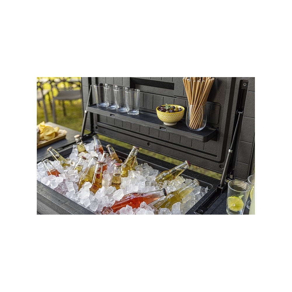 Paverskite kiekvieną susibūrimą lauke tikru kokteilių vakarėliu su šiuo mobiliu lauko šaldikliu! Užpildykite vidų ledukais, įdėkite šaldymui mėgstamų gėrimų, viduryje pastatykite jūros gėrybių ar šviežių vaisių padėklą – ir vakarėlis užskaitytas! Šaldiklis su ratukais, tad yra mobilus ir jį gali lengvai nusiveti ten, kur patogu. Paprastas surinkimas ir priežiūra, lengvai valomas. Atsparus nepalankioms oro sąlygoms ir UV spindulių poveikiui.