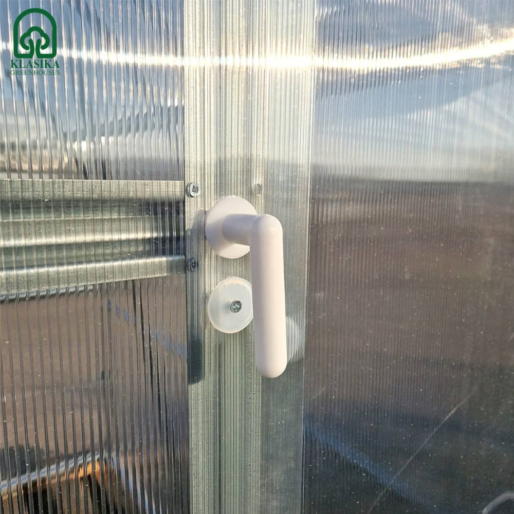 Patogi ir universali plastikinė šiltnamio rankena, skirta KLASIKA šiltnamiams. Užtikrina lengvą durų atidarymą ir uždarymą, atspari lauko sąlygoms ir kasdieniam naudojimui.