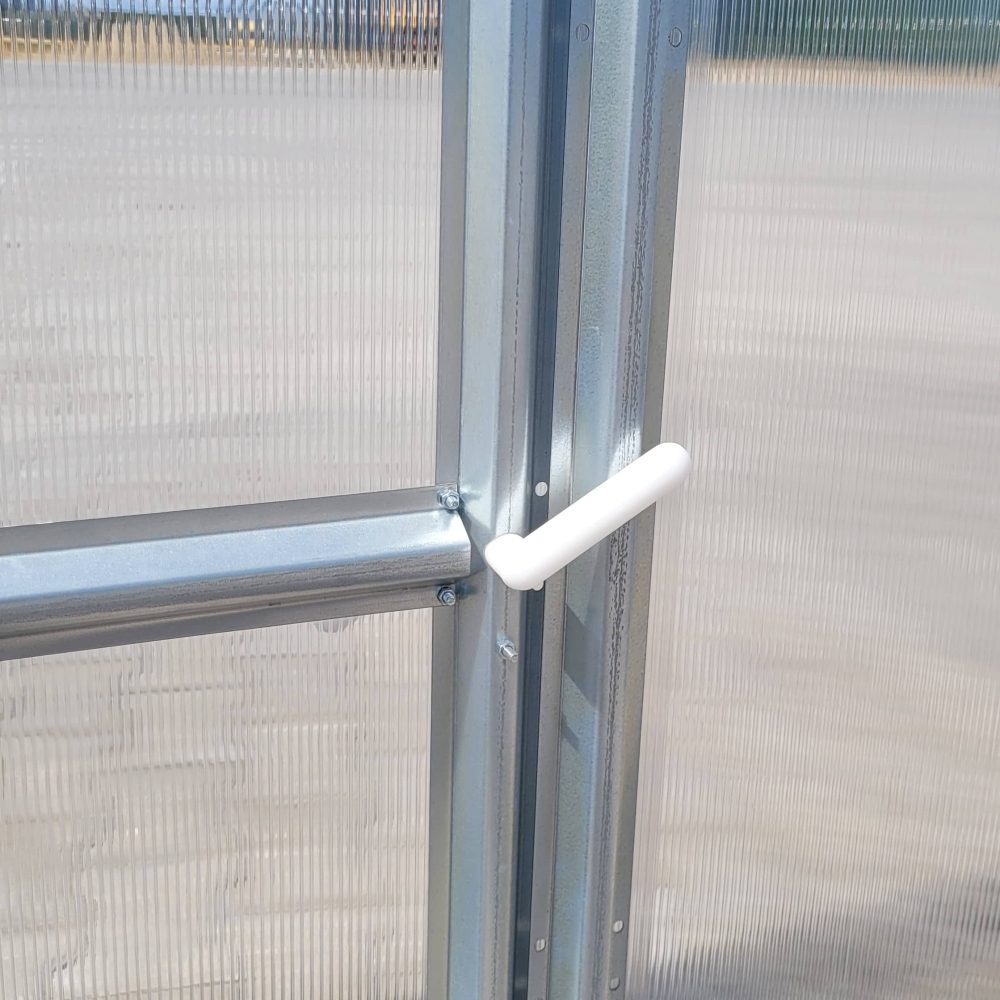 Praktiška ir patikima rankena, sukurta patogiam šiltnamio durų ar orlaidžių naudojimui. Tai funkcionalus sprendimas tiek naujam šiltnamiui, tiek keičiant susidėvėjusią detalę.