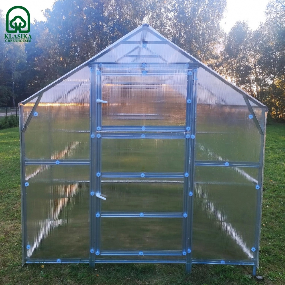 Šiltnamis puikiai tinka ne tik Lietuvos klimato sąlygoms, tvirtinimo kojos visu perimetru įkasamos į žemę po 40cm gylyje. Specialios konstrukcijos aliumininis kraigas suteikia šiltnamiui tvirtumo bei išskirtinumo, taip pat apsaugo polikarbonatą nuo papildomos drėgmės patekimo. Komplektacijoje pateikiami sutvirtinimai į kiekvieną arką, todėl žiemos metu nereikia išmontuoti.