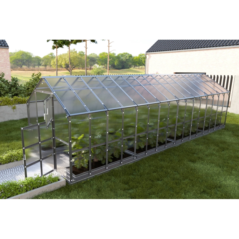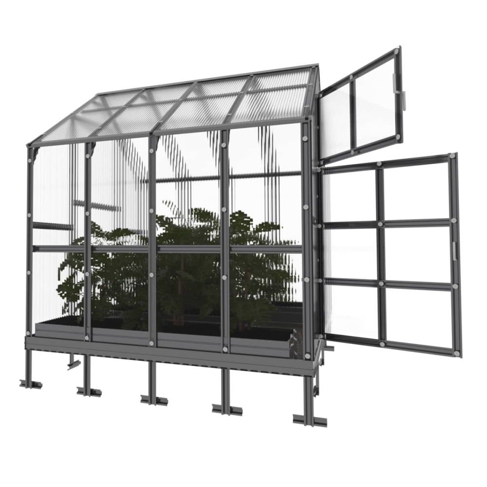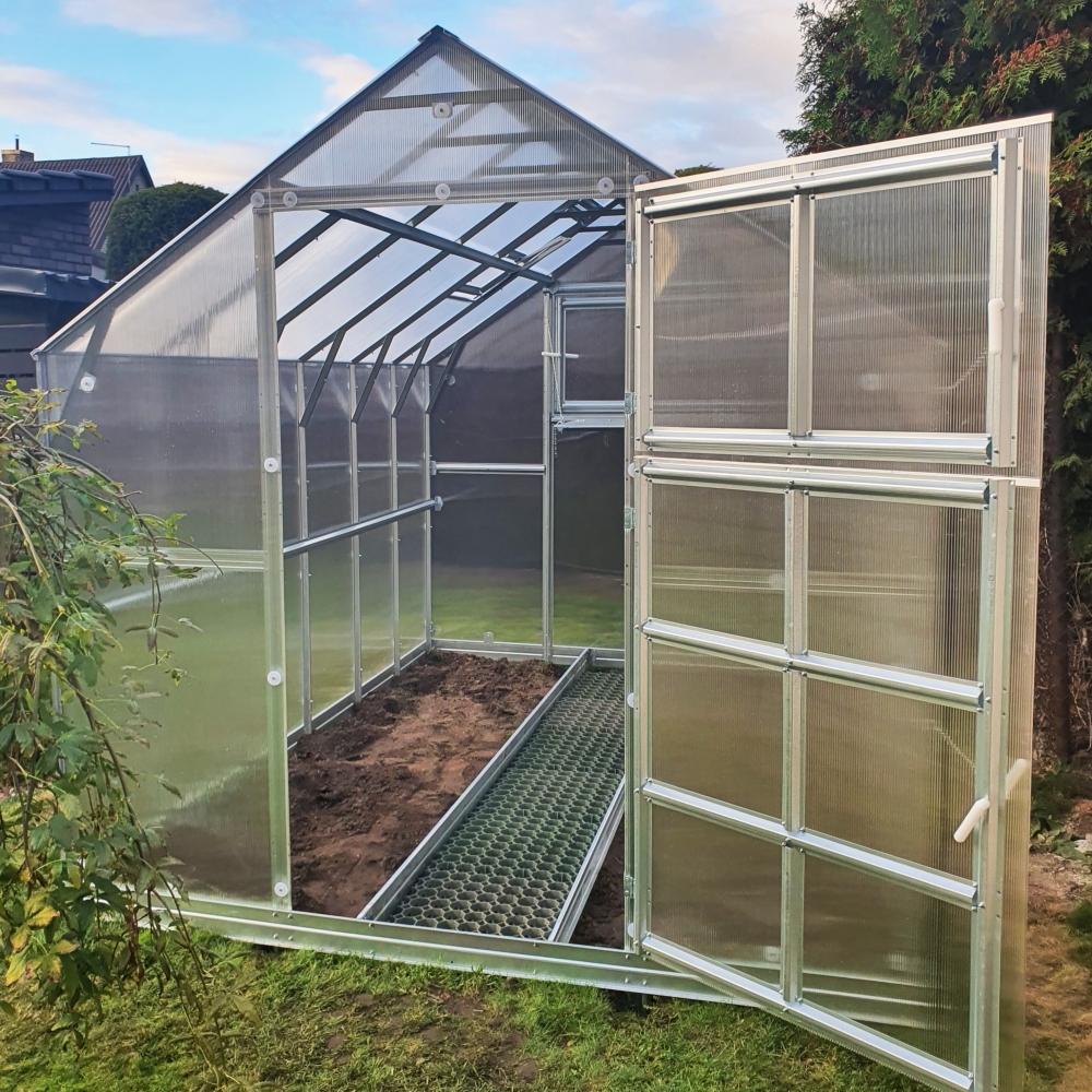 Dangai naudojamas tik kokybiškas, europietiškas, 6mm storio kanalinis polikarbonatas, kuris pasižymi atsparumu kenksmingiems UV spinduliams. Pasirinkę šiltnamį su polikarbonato danga, būsite ramūs dėl jo ilgaamžiškumo, kadangi dangai suteikiama net 10 metų gamintojo garantija. Šiltnamis puikiai tinka ne tik Lietuvos klimato sąlygoms, kadangi sukomplektuotas jau su pamatiniu pagrindu, o skersiniai visu perimetru įkasami į žemę po 40cm. Specialios konstrukcijos aliumininis kraigas suteiks tvirtumo bei išskirtinumo, apsaugos polikarbonatą.