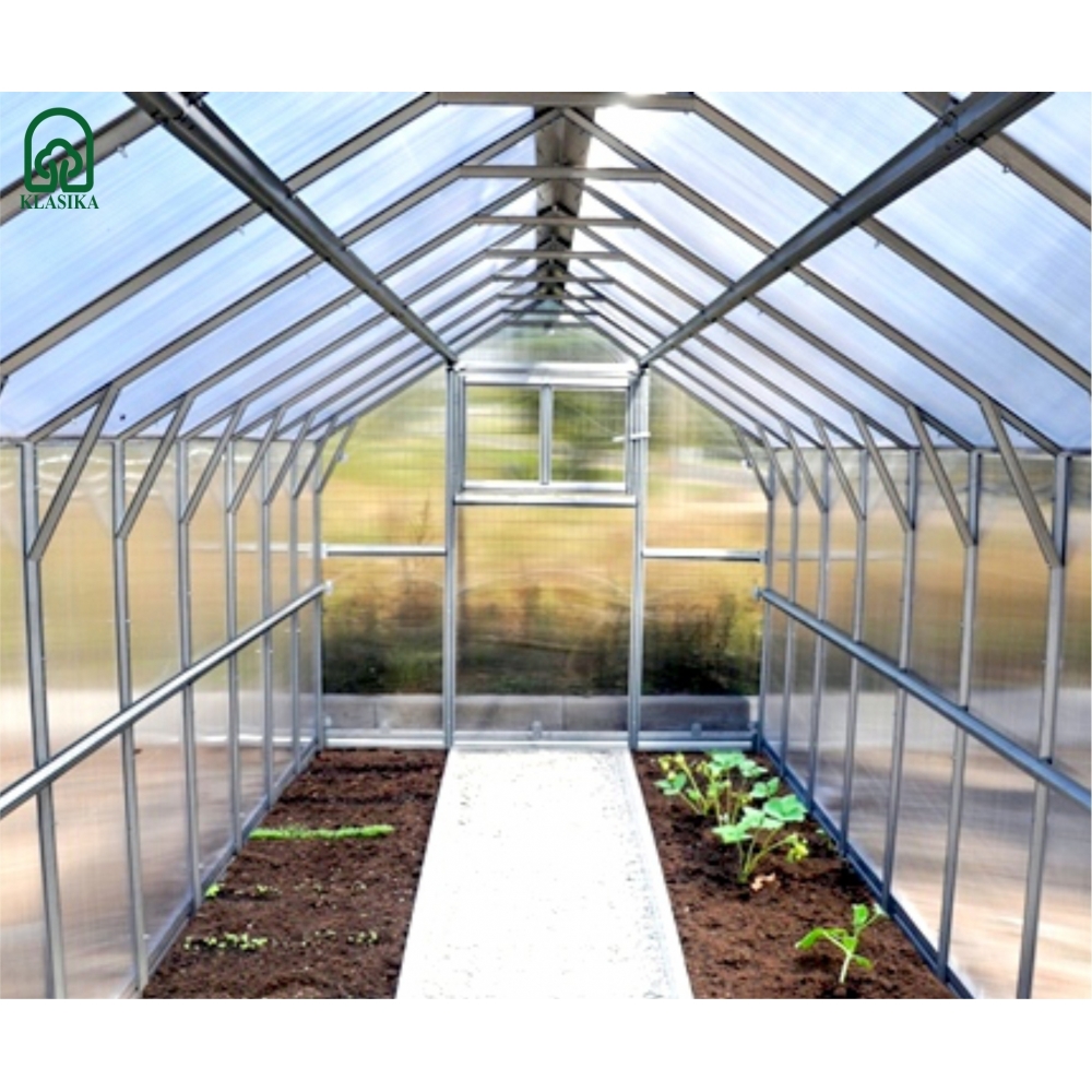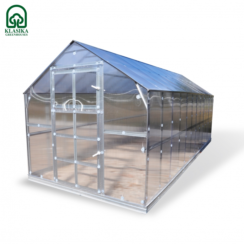 Jei ieškote ne tik patikimo, ilgaamžio šiltnamio, bet ir namų aplinkos puošmenos – pristatome Jums šiltnamių KLASIKA šeimos narį – KLASIKA HOUSE. Tai dvišlaitis šiltnamis, puikiai tinkantis auginti įvairias kultūras. Tokio tipo šiltnamyje galima optimaliai išnaudoti visą jo plotą. Šiltnamio karkasas pagamintas iš 1mm storio ir 78mm pločio plieno juostų. Profilių cinko storis 275gr/m2, tai atitinka ypač aukštos kokybės reikalavimus.