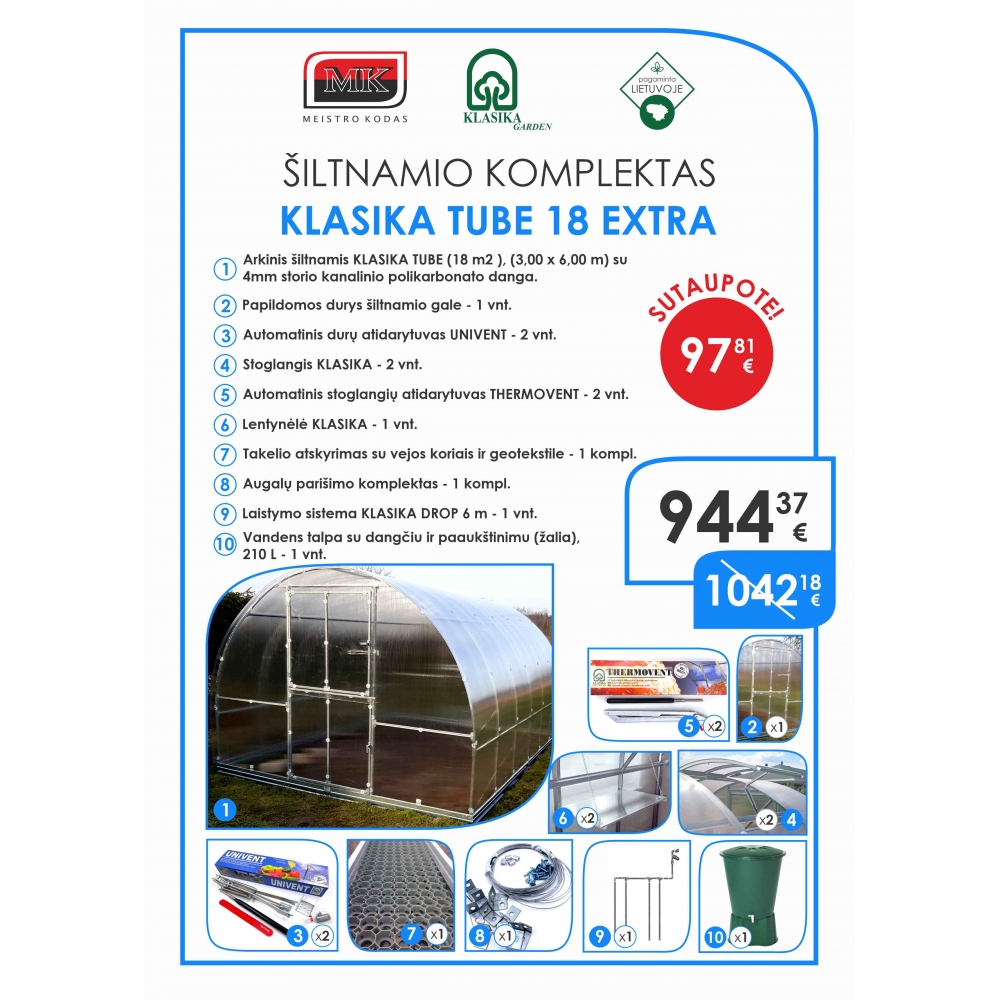 Šiltnamis KLASIKA TUBE 18 EXTRA
