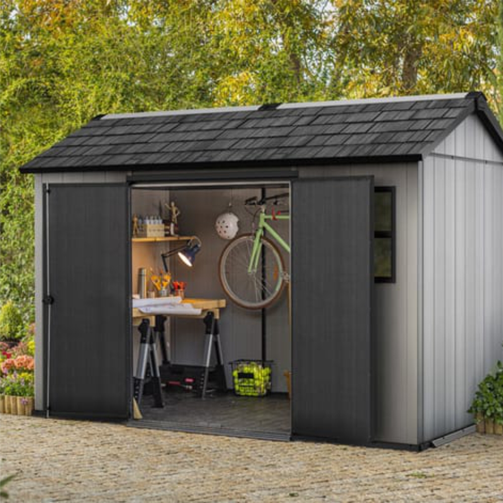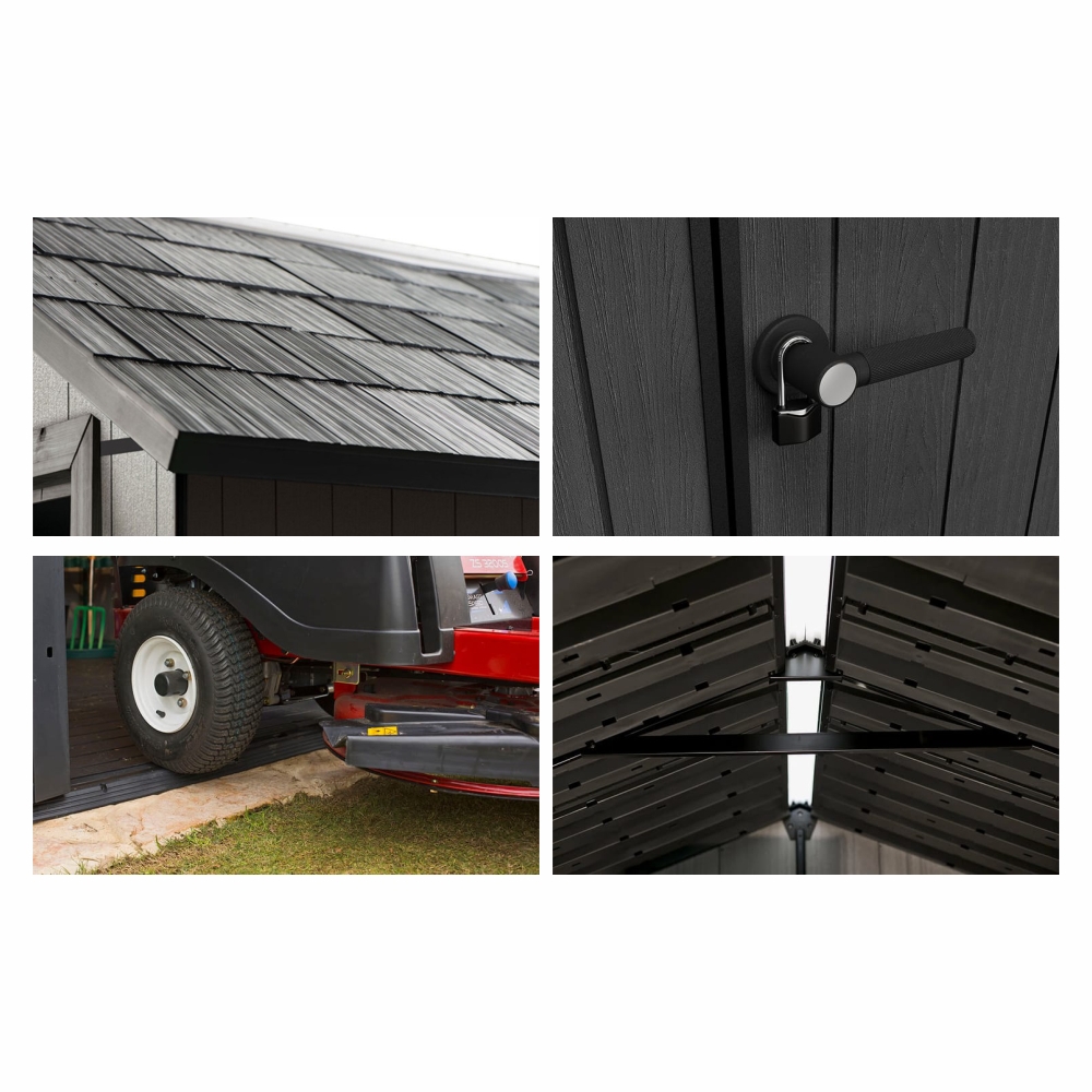 Praktiškas įrankių namelis OAKLAND 1175 pagamintas iš unikalios dervų kompozicijos, kuri sudaro labai tvirtą medžiagą, todėl jis atsparus nepalankioms oro sąlygoms. Namelis sutalpins ne tik sodo įrankius ir priedus, bet ir vejapjovę ar kopėčias. Dvigubos įrankių namelio sienos pagamintos iš unikalios dervų kompozicijos, kuri sudaro labai tvirtą medžiagą, todėl jis atsparus nepalankioms oro sąlygoms. Tvirtas stogas ir papildomai sustiprinta plieninė konstrukcija garantuoja ilgą tarnavimo laiką. Namelis gali būti perdažomas pagal poreikį.
