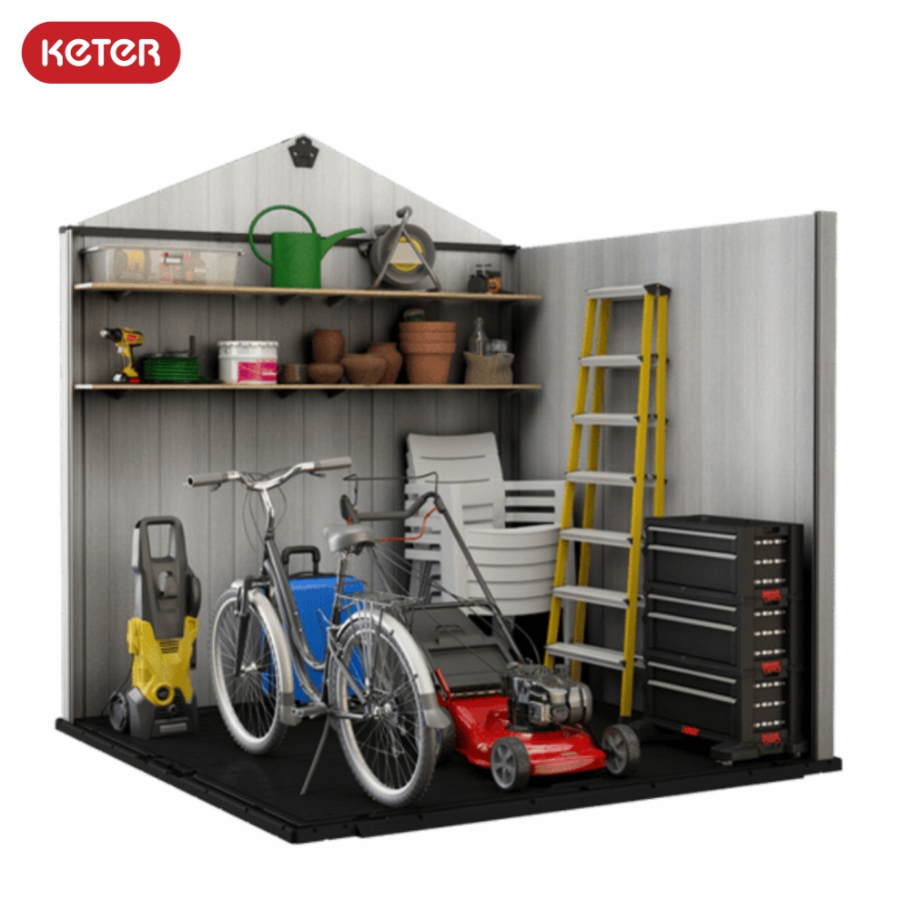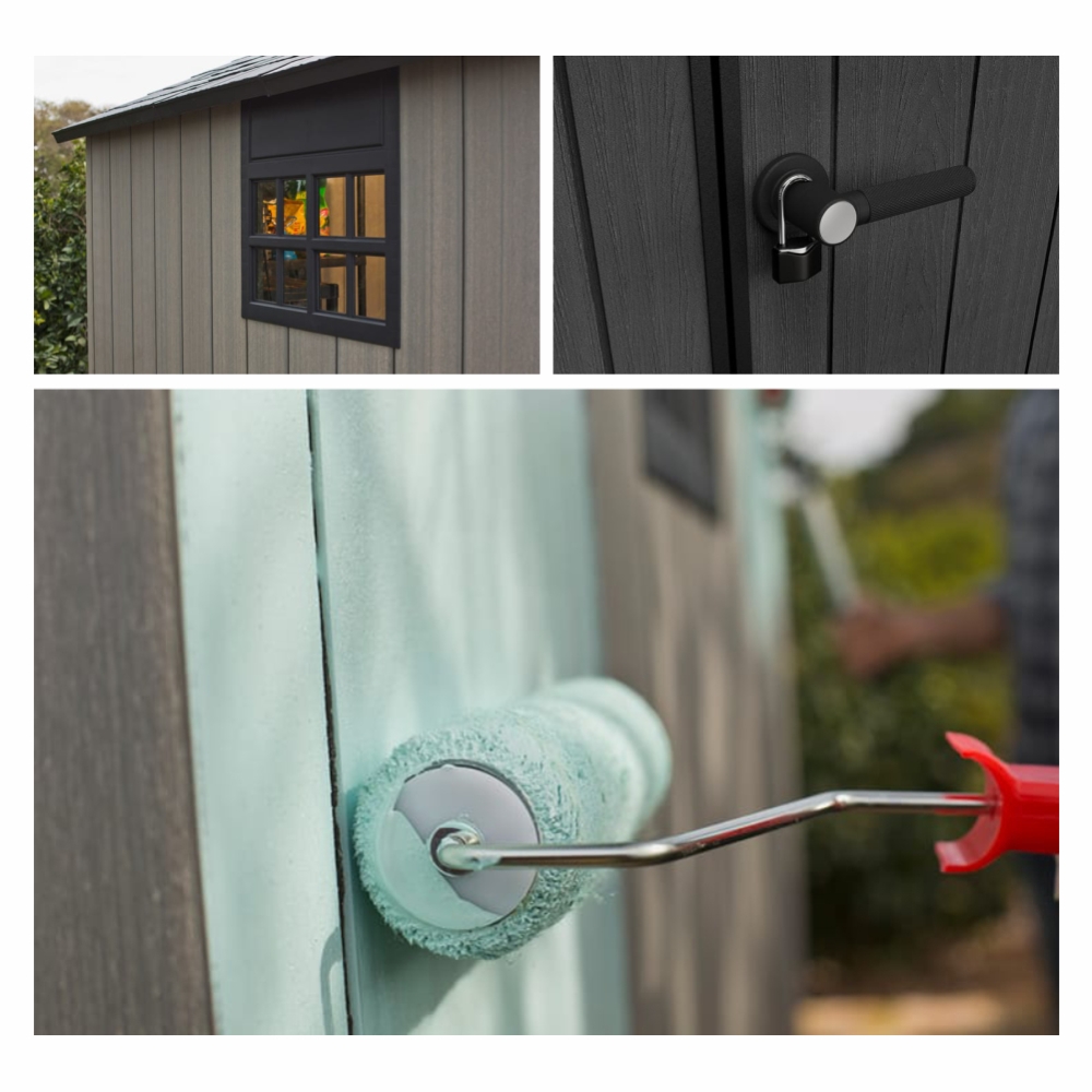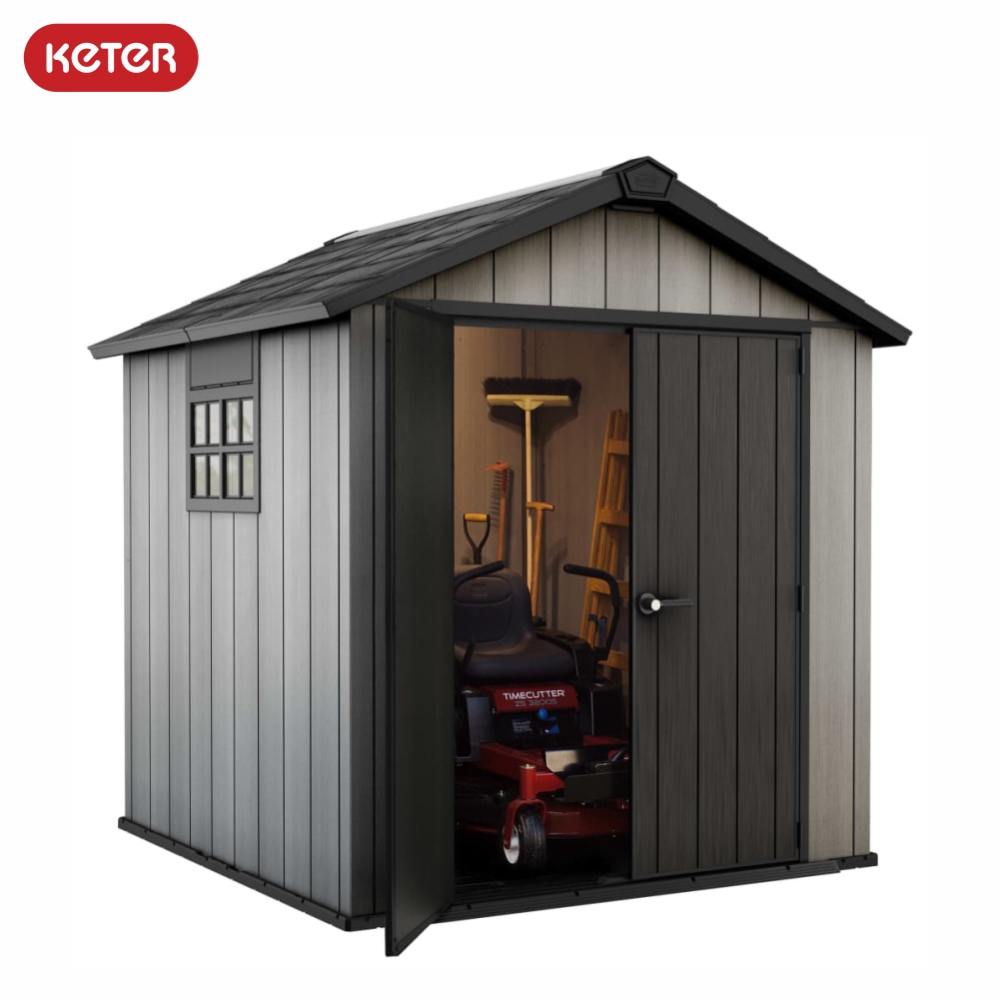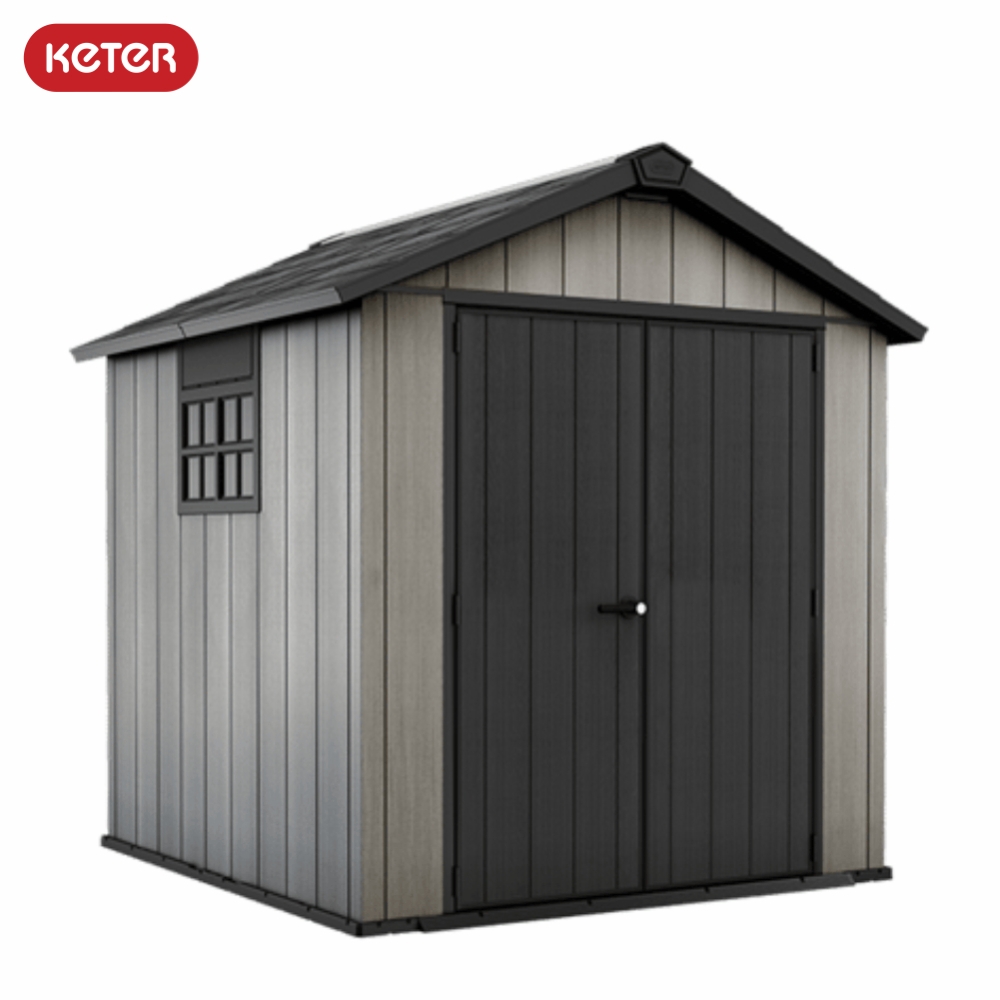 Praktiškas įrankių namelis OAKLAND 757 yra pagamintas iš unikalios dervų kompozicijos, kuri sukuria labai tvirtą medžiagą, todėl namelis yra atsparus nepalankioms oro sąlygoms. Namelis sutalpins ne tik sodo įrankius ir priedus, bet ir vėjapjovę ar kopėčias. Jo pagrindiniai privalumai – stabili, sustiprinta plieninė konstrukcija, tvirtas stogas ir plačios, dvivėrės durys.
