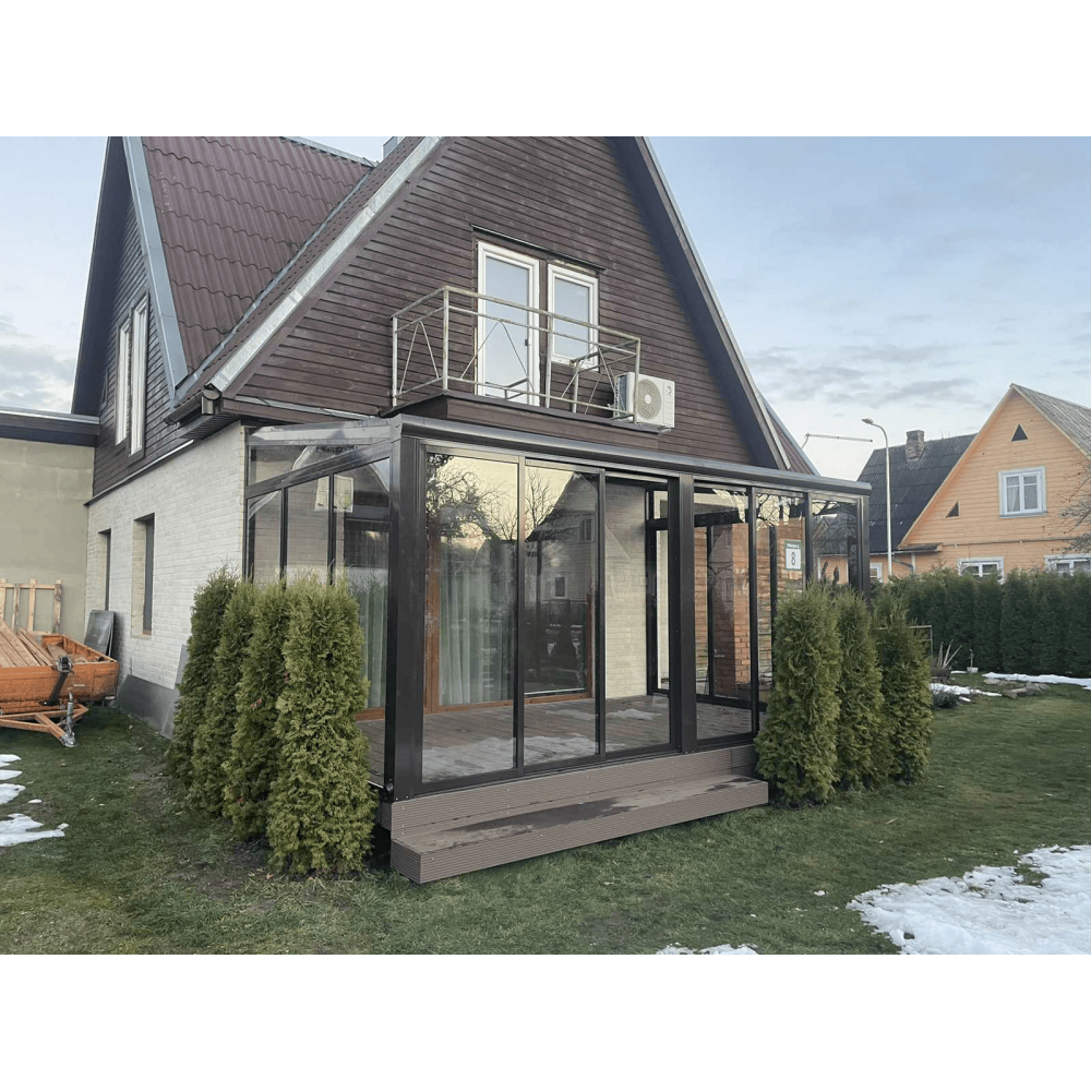 • Tvirtas terasos stogas, dengtas 10 mm storio grūdintu stiklu, atlaiko net iki 20 cm siekiantį sniego sluoksnį.