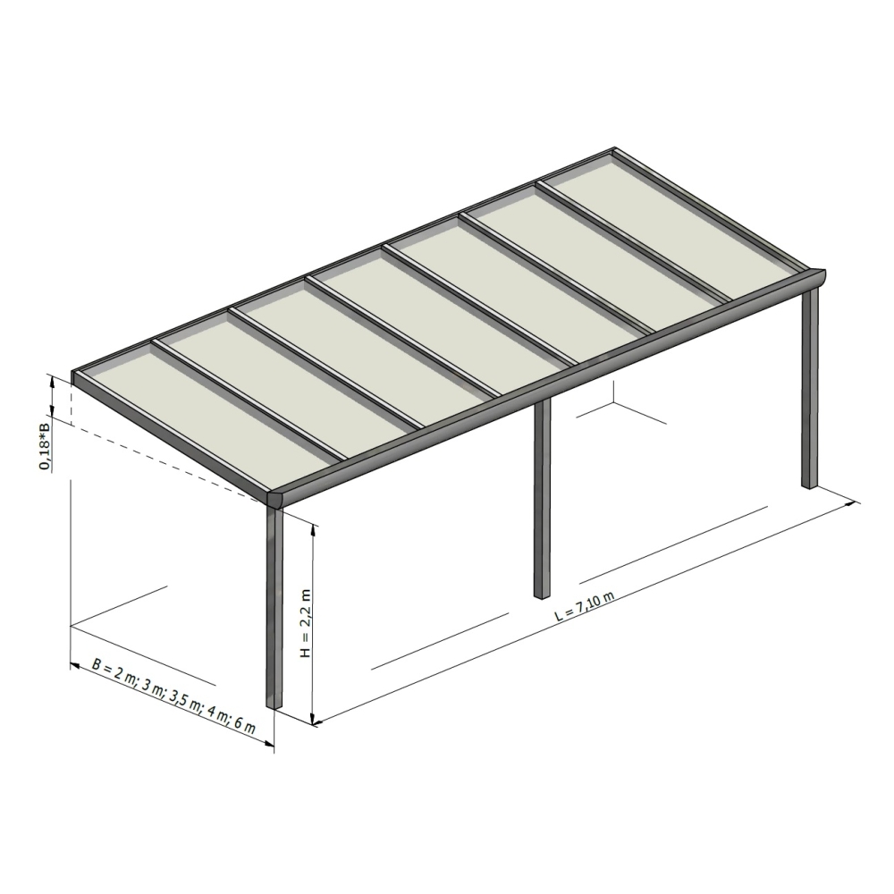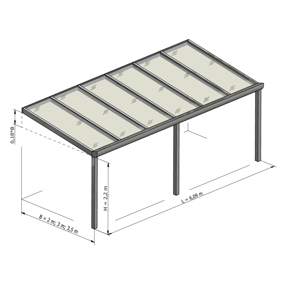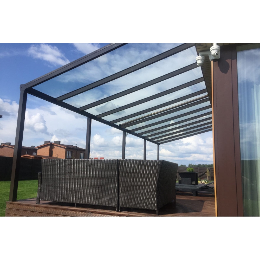 Aliuminės terasos stoginės su grūdinto stiklo danga kaina priklauso nuo pasirinktų produkto išmatavimų. Į nurodytą stoginės prie namo kainą įeina aliuminio karkasas ir grūdinto stiklo terasos stogas. Taip pat – varžtai, reikalingi pavėsinės montavimui.