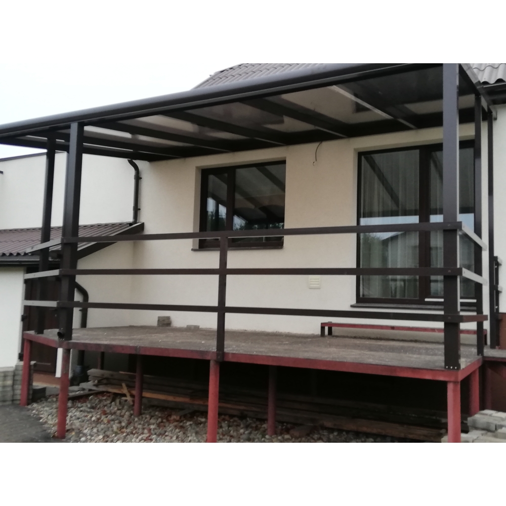 • Galimybė rinktis stoginės aliuminio konstrukcijos spalvą: ruda (RAL 8019 arba RAL 8017), pilka (RAL 9016) , balta (RAL 7016).