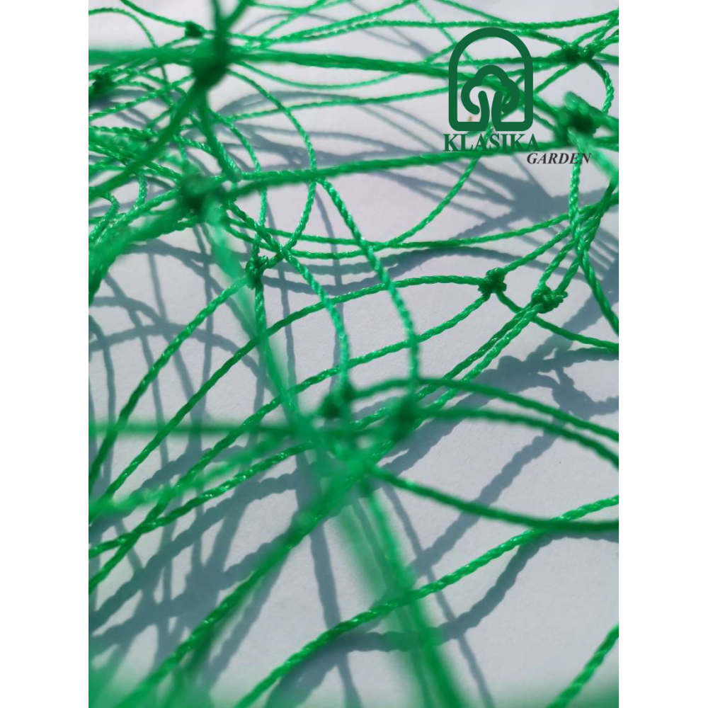 Žalia tinklo spalva gerai derinama su sodą supančia žaluma.