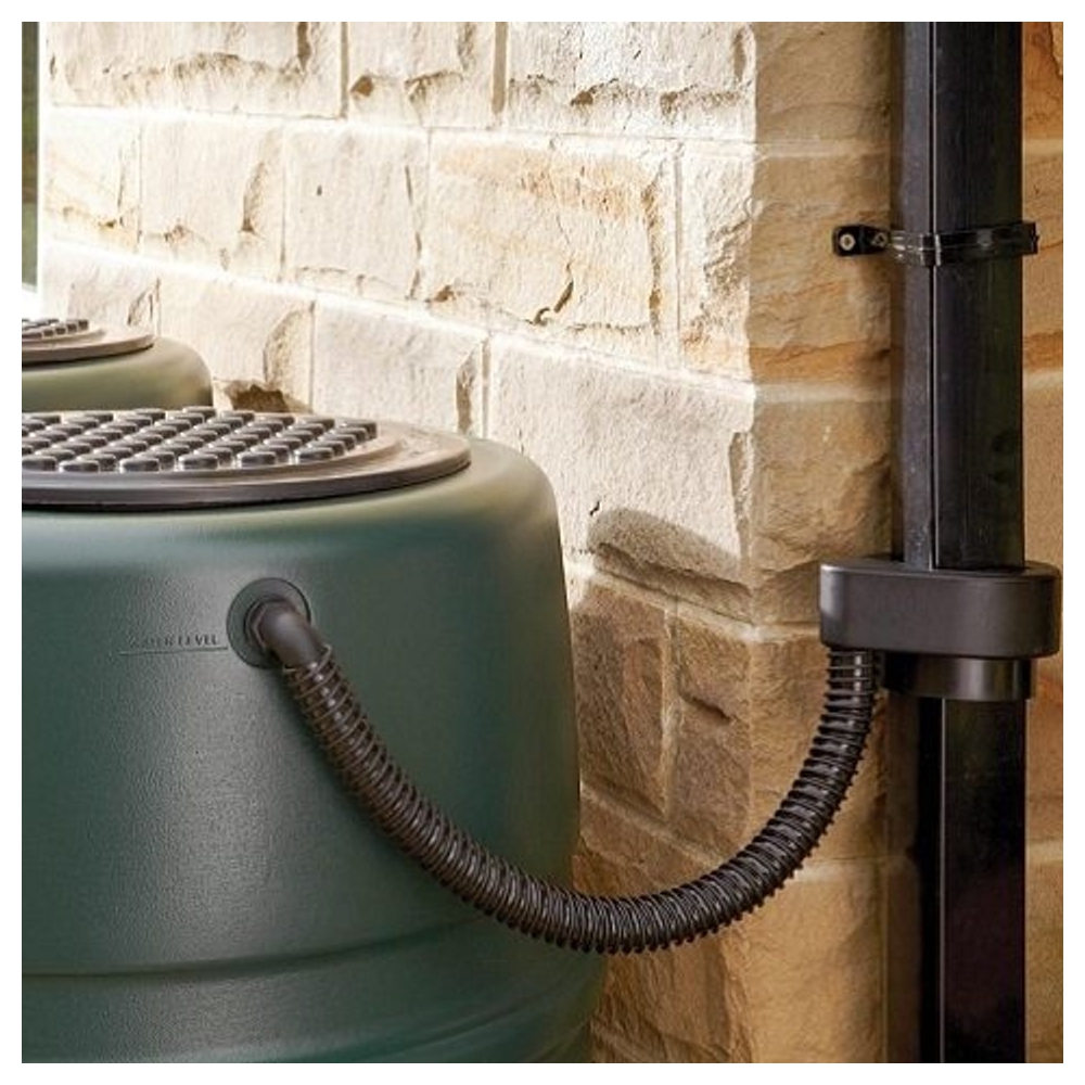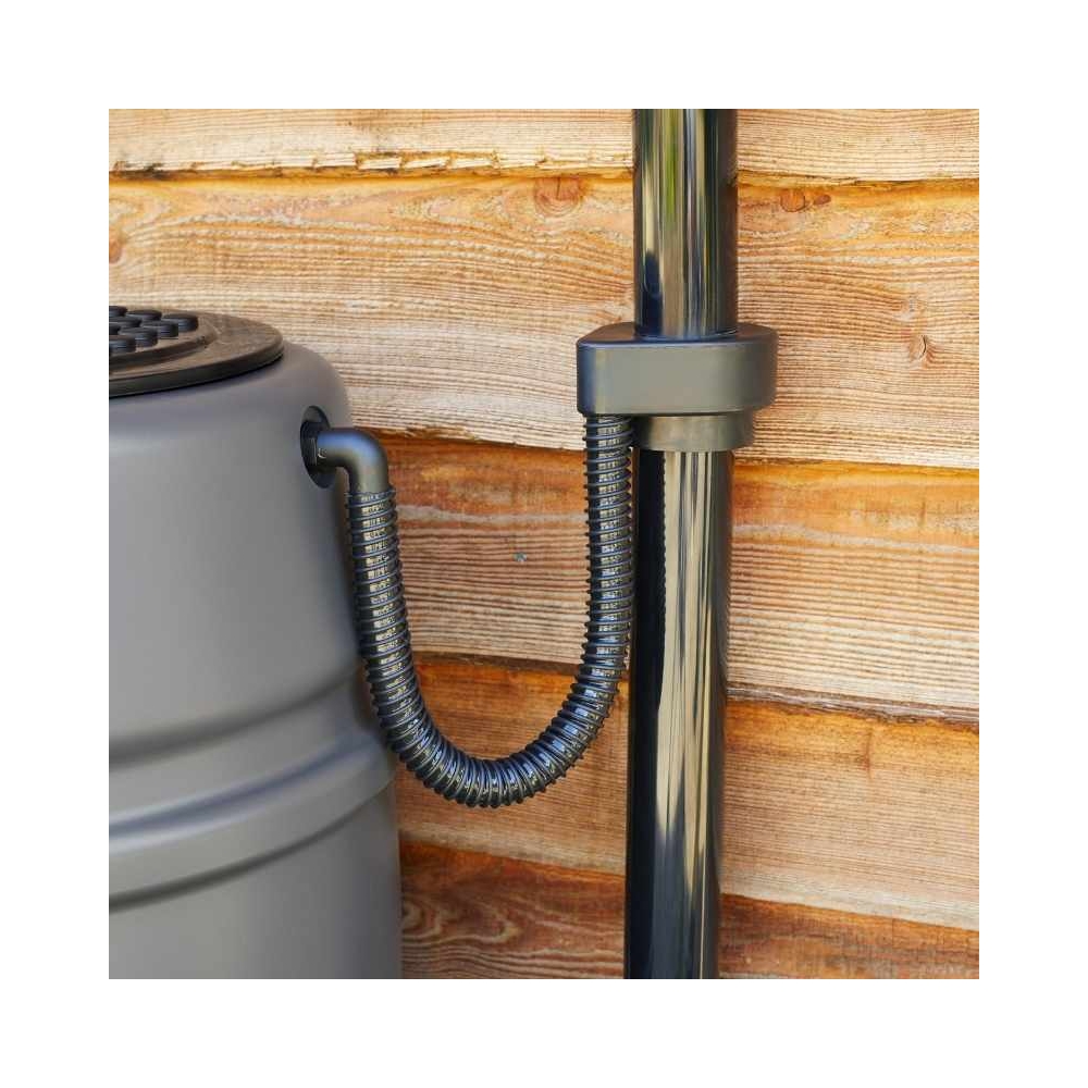 Universalus lietvamzdžio pajungimas tinka daugeliui plastikinių lietvamzdžių. Lanksti jungiamoji žarna leidžia vandens talpą pastatyti patogiausioje padėtyje ir sujungti ją su lietvamzdžiu.